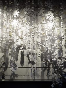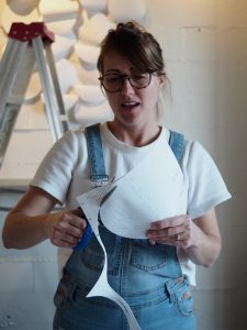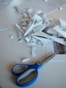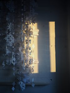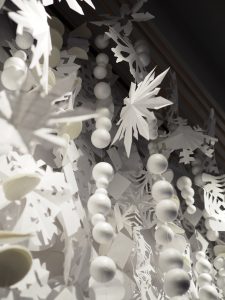 The 2019 holiday installation was made with scrap paper around the studio.