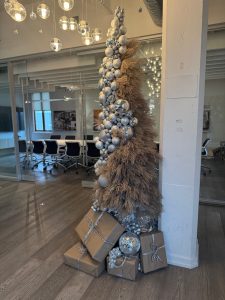 Each December, CHIL Interior Design’s Vancouver office transforms into a holiday masterpiece. Part art installation, part holiday cheer, it’s become a tradition all CHILians and guests look forward to seeing each year. At the heart of these incredible installations is Associate Designer Marina Charters, whose creative vision has been shaping these installations since 2015. Drawing inspiration from nature, sustainability, and the joy of experimentation, Marina’s annual holiday installations are as much about storytelling as they are about design.
