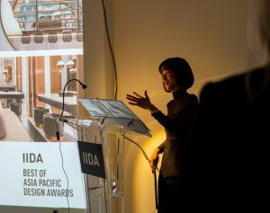 Hong Kong Design Director Stella Liao discussing the project while accepting an award at the IIDA Awards Ceremony in Paris.