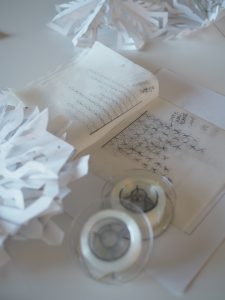 The 2019 holiday installation was made with scrap paper around the studio.